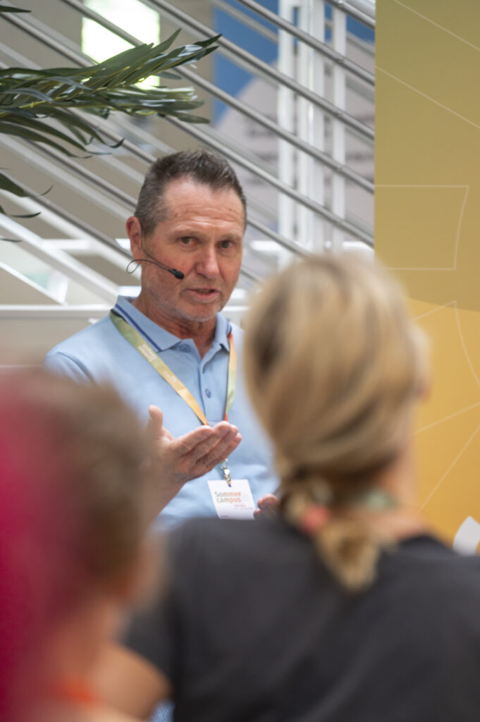 Der Mittagstalk «Bildungsort – Lernen im Gespräch» schafft im Sommercampus 2025 in Interlaken von swch einen bewusst offenen Raum fernab klassischer Referate. Statt Frontalinput entsteht hier ein dialogischer Begegnungsort, an dem Biografien, Lernwege und persönliche Erfahrungen im Zentrum stehen. Genau dieser Austausch macht sichtbar, wie Bildung durch Menschen und Beziehungen lebendig wird.